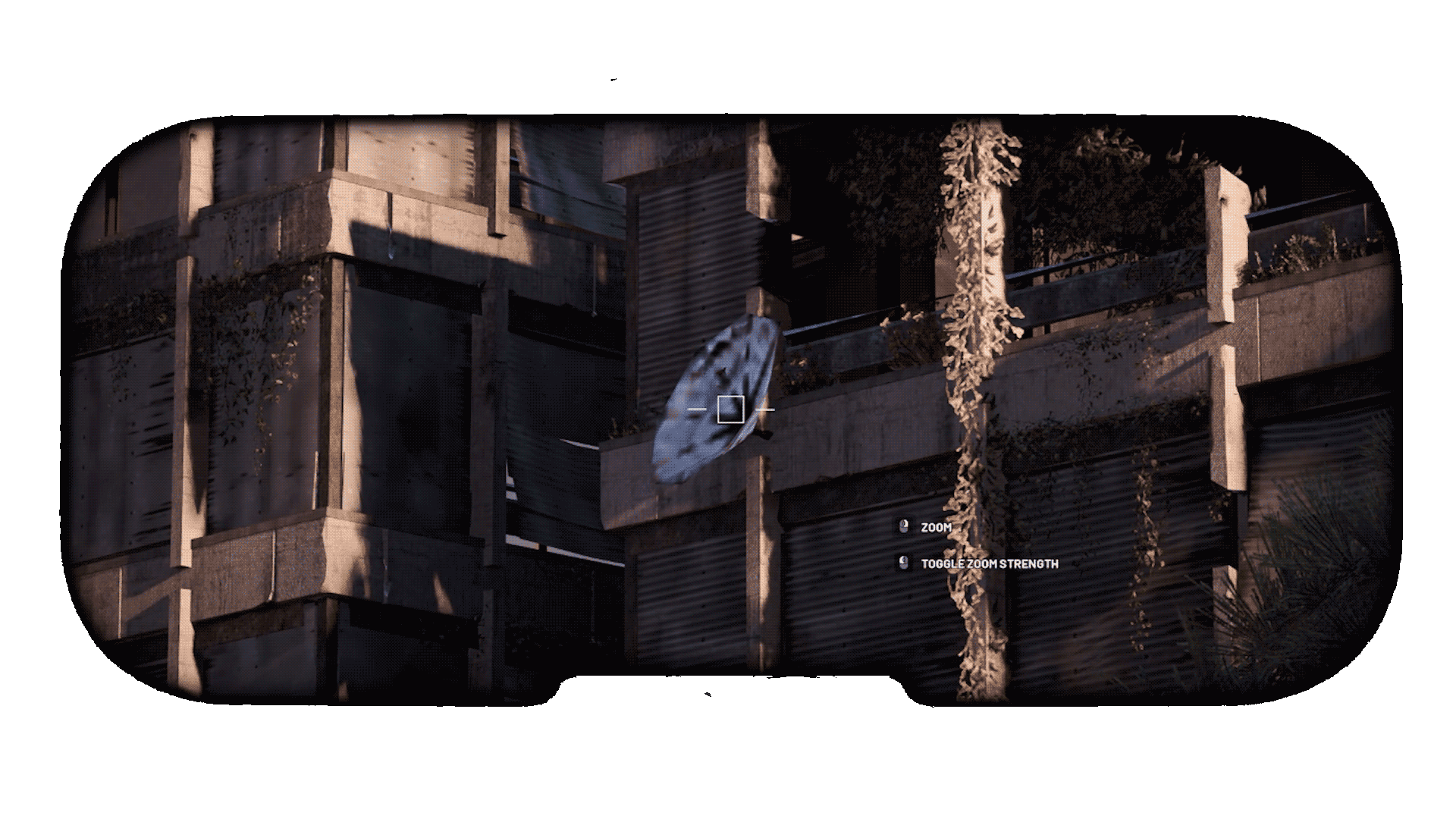 The raider I was initially fighting managed to escape, or at least I lost track of him. Didn’t have much time to sulk about it however, as I suddenly hear the sound of a zipline. I quickly hide behind the wall of the apartment I am in, peek around the corner to see, what I can only assume to be the third party in the encounter sliding into a hole in the wall directly opposite of my window.