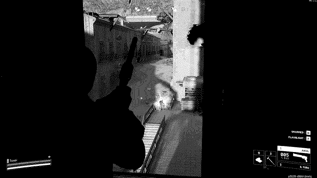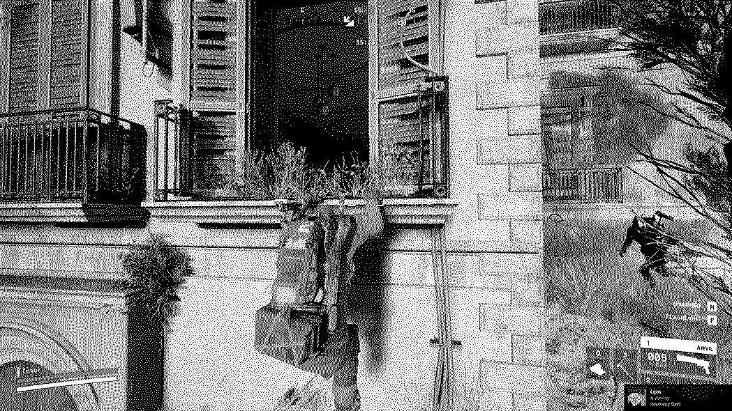 I observe for a little bit as the new raider leaves the hole in the wall to, I imagine, chase the raider we had been fighting before. Little did he know however I was still here lurking in the dark window. As he stands at the top of the stairs, the same ones I had just shot the earlier raider not 30 seconds ago, I again take aim and let out a heavy hitting blow from my Anvil.